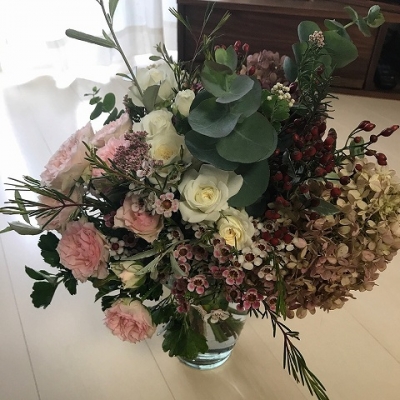 10月24日は結婚記念日○○周年でした。 私は、台風や何だかんだで初めて結婚記念日を忘れておりました。 前の日に主人が、花束を持って帰って来ました。 「明日は遅くなるから結婚記念日の・・・」と言っているのです。 去年は知っているのに何も無かったので私がふてくされていたのを覚えていたのか 怖かったのか。 しかし今年は結婚記念日を私は忘れておりました。 多分去年で「結婚記念日」と言うものを頭から消したのだと思います。 ...