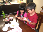 先日、仙台トラストシティで「つくる ラボ」というイベントが2日間ありました。 作る事が大好きな次女は、数ある中で「ソフト粘土で風鈴を作ると言うのをやりたい!」と、 チラシをみた時から話していたので、風鈴を作りに行きました。 風鈴作りは子供に人気の様で、少し順番が来るのを待っておりました。 この作品を夏休の工作の宿題にしようと思いました。 「うさぎの顔の風鈴を作る!」といい自分のペースで作っておりました。 30分もかから...