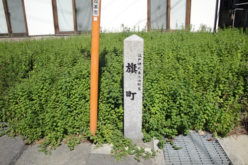 旗(はた)町の由来城外武家屋敷の一町名。西町と徒士町の中間に位置し、町の形が旗指物の形に似ているので、 この名がつけられたという。JUGEMテーマ:街