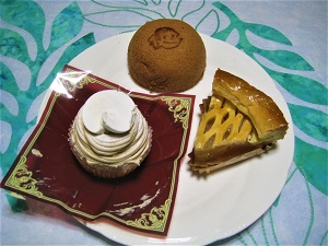 今日の天気は、晴れ・・・ 午前中いつもの内科に定期健診で採血して いつもと変りなく・・・ 久しぶりにケーキ食べました〜 ほっぺと笠間産栗のモンブランとアップルパイ。 全部一人で食べたわけではありませんよ。 美味しかったです〜 そして今日のパッチワークは ステンドグラスキルトの2枚分の パイピングテープ付けが終わったので 次の段階に入るまでの繋ぎに 丸〇のパターンのキルティングしてます。 明日は、たなばたの会・・・ それでは、また〜〜 JUGEMテーマ:今日のおしゃべり