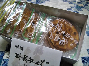 今日の天気は、曇り・小雨・・・ 今日は午後から晴れる予報でしたが ずっと曇りな天気で途中から小雨が・・・寒い 某新聞のお煎餅プレゼントに応募していて 当選しました。と言う手紙と一緒に 午後、新聞店の方が届けてくれました〜 大好きな手焼き煎餅、嬉しいです〜 早速一枚食べてみましたが 美味しかったです。 お友達からいただいた柿やお饅頭やこのお煎餅、 毎日おやつにいただきます。 ありがとうございます。 そして今日のパッチワークは まだまだバッグのキルティングをチクチク・・・ それでは...