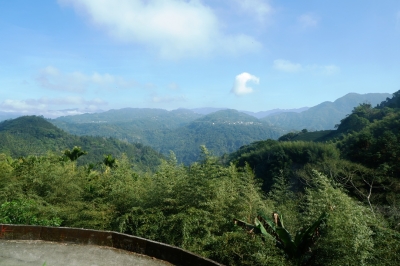 【写真−1 手前左に道路のような物が写るが水社寮駅近くに道路がある】 嘉義駅から31.4キロ地点にある梨園寮駅から交力駅坪間は3.5キロあるが、この区間はトンネルがなくて見晴らしが良い。写真−1は民家や商店のある交力坪駅から次の水社寮駅へ向かう途中だが、遠くの山の頂近い山腹に家々が固まっているのが見える。 【写真−2 メンマの材料は1mくらいに伸びたマチクの筍を使う】 標高1000mを越え、阿里山森林鉄道沿線の植生に変化が見られる。写真−2は亜熱帯に生える『麻竹(...