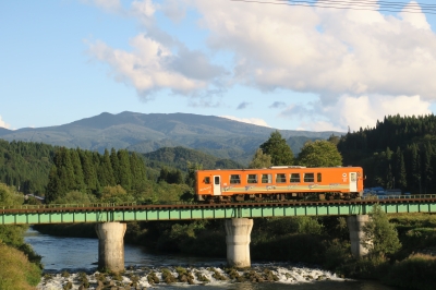 JUGEMテーマ:鉄道・駅 10月6日森吉山から下山後、阿仁前田駅近く 森吉山をバックに内陸線を撮影。 小又川鉄橋 とことと走る気動車。 秋の一日。