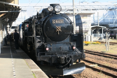 JUGEMテーマ:鉄道・駅 10月10日(木)朝秋田市内にSLの汽笛が響いた。 今日の仕事は午後からなので、午前は撮り鉄と決める C6120に3年ぶりのご対面 試乗会に当選した乗客はみな嬉しそう。 子供に交じって大人もはしゃいでいる。 秋田駅から追跡開始。 男鹿まではDE10型が先頭なので、SLは後ろ向き。 田んぼの中をのどかに走る(二田駅手前) 鉄橋を煙を逆にたなびかせて走る 船越水道 船越駅で追い越して正面から DE10も精悍な顔つき 男鹿といえば寒風山 撮り...