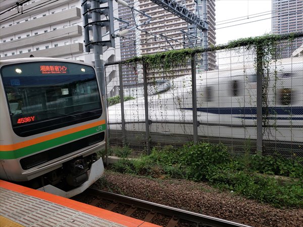 本日は品川レッスンであります。 いつもの乗換駅、在来線と新幹線のすれ違い。この在来線は行き先が2つあって、1つは品川を通らず大崎、渋谷、新宿方面へ行く路線(上記画像の湘南新宿ライン)、もう一つは品川、新橋、東京、上野方面の「上野東京ライン」で、もちろん上野東京ラインを待っているわけです。 しかし、いつも凄いなあと思うのは、そこそこの運転本数の在来線よりもはるかに多く通り過ぎる東海道新幹線の運行の多さです。ひっきりなしと言っても良い位に新幹線は疾走して行きます。16両編成、定員1,323席、1時...