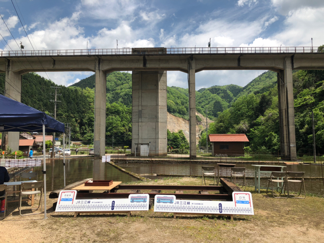 旧三江線・宇都井駅でトロッコ乗車の 社会実験が行われています。 11/9〜11,16〜18,23・24の のべ8日間です。 >>三江線プチ鉄道博in宇都井 地上からホームまでの高さ20m かつて日本一の高さとして“天空の駅” といわれていました。 トロッコは先月口羽駅で走行したものを宇都井まで回送しました。 ↓参考画像再掲 改めてトロッコから見下ろすと高さがすごい! 石州瓦の赤い屋根がきれい。 下郷トンネルを抜けて 紅葉...