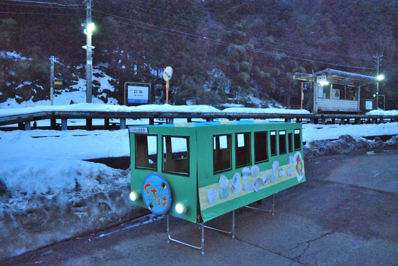 忙しくて更新できぬまま 気がつけば2ヶ月半も過ぎていました。 その間のことを少しずつ投稿していきます。 大雪被害で長期運休した三江線が ようやく復旧した2月24日の朝 始発列車のお客さんを島根県の口羽駅で迎えました。 朝3時くらいに広島を出て島根へ入りました。 駅の周りはまだ雪が残って アスファルトの上は凍っているところもありました。 口羽の子どもたちがダンボールで作った 三江線の列車です。 口羽駅の駅舎をイルミネーションが飾ります。 隣町の美郷...
