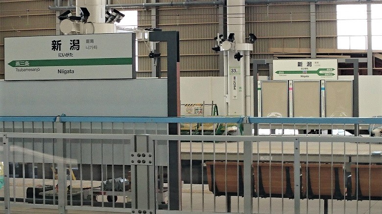 JUGEMテーマ:鉄道・駅 もう何度書いことやら「本当に4/15から電車走るの・・・(新潟駅高架ホーム)?」。素人の私は未だ半信半疑? そんな折、開業丁度1ケ月前、新幹線ホームに行く用事が有りましたので拝見してきました。 今回、何となく電車走ってもおかしくないかな・・・と言うイメージに変わってます(^^)。 手前の駅標は同一ホーム乗換5番線新幹線乗換ホーム側(向き?)。奥が在来3番線。 一番かつ最大の変化は、「駅標」がで...