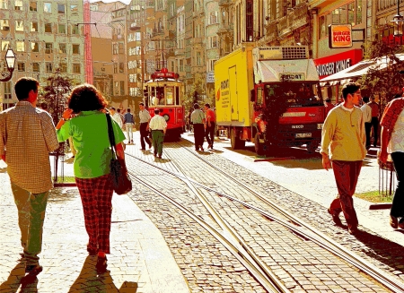 JUGEMテーマ:鉄道・駅 Günaydın。 トルコの大都市でありますイスタンブール新市街の風景なのでございます。 名物の路面電車が走る線路の上を、ヒトもクルマも平気で通る!という、長閑なのか物騒なのか?判別しかねるという風景は。 まぁ、数百メートルしか長さがないという路線でありますし、ダイヤなんてあるのかないのかすら怪しいという雰囲気で。 電車はガタゴトと走っているのでございます。 そもそもが。 商店街が、観光の目玉にと走らせている路面電車なのでありますけれど。 電車のほうは地元のみな...
