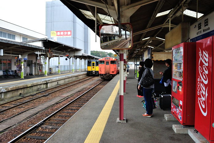 益田駅から今度は山口線に乗ります。 益田駅から徒歩5分のところにスーパーがあったので 刺し身でも買おうと思ったら臨時休業…orz でも益田駅には美味しいご当地駅弁が色々! さざえ弁当を買いました。 列車はのどかな田園地帯を走ります。 島根県と山口県の県境にある津和野駅。 この次はもう山口県です。 津和野の名酒・高砂の蔵が見えます。 観光地としても有名な津和野。 津和野駅構内にはSLが展示されていました。 津和野駅を出てしばらく行くと、 おや?畑の中に菜の花が… SLの形に咲...
