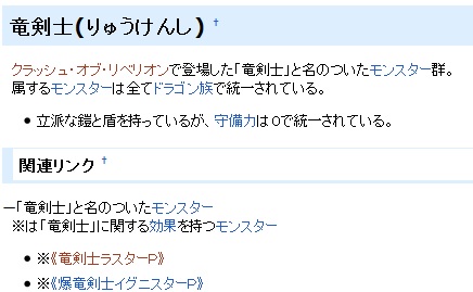 JUGEMテーマ:遊戯王カード 竜剣士って2種類だけだったんですね ラスターの方はスーだったので ちょっと大変でしたが、なんとか確保 あとwikiの方にこんなことが・・・ ・立派な鎧と盾を持っているが、守備力は0で統一されている。 なんかこういう文句、初期バニラに多いですよね 次弾で守備力0じゃないやつが現れたら 確実に更新されるので魚拓 0で統一されたら表示形式変更カードの需要が上がりそう むしろ鎧と盾を持ってないモンスターが守備力高いとか(笑) その代わりATK/0 なんか変ですね