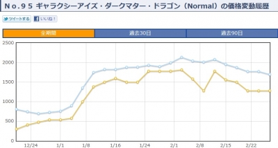 JUGEMテーマ:遊戯王カード 前に挙げたカード+友人から聞いたものを紹介 ダークマター PP17発売までまだ20日ほどありますが 安定を求めるには限界があるみたいで? 少し下降気味ですね 一般発売されたら1k以下はほぼ確定だと思いますけど 逆に腕のあるプレイヤーが成績を残せば或いは?って感じです カステル なんだこの子は(驚愕) まだまだ上がり続けてました フェルグラみたいに、レアコレでワンコインになる可能性もあるから 今から買うのはキツいねぇ(特に初心者) メガロアビス ネプトアビス関連で...