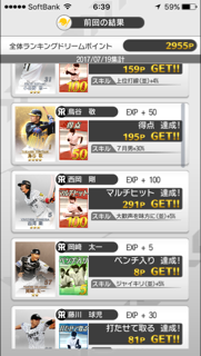 JUGEMテーマ:iPhoneゲームアプリ 天気がしっくりこないですが 梅雨は明けたみたいで プロ野球が好きだ!2017 (by.心はまだ梅雨スクエニ) 昨日の稼ぎはこれだけです 当たり前っちゃぁ、当たり前 順位は、御覧の通り 順当っちゃぁ順当 ガチャの結果は、悲しい梅雨空 スキル追加が唯一の救い さて、本日こそはタイガース 暗いムードを吹き飛ばせ