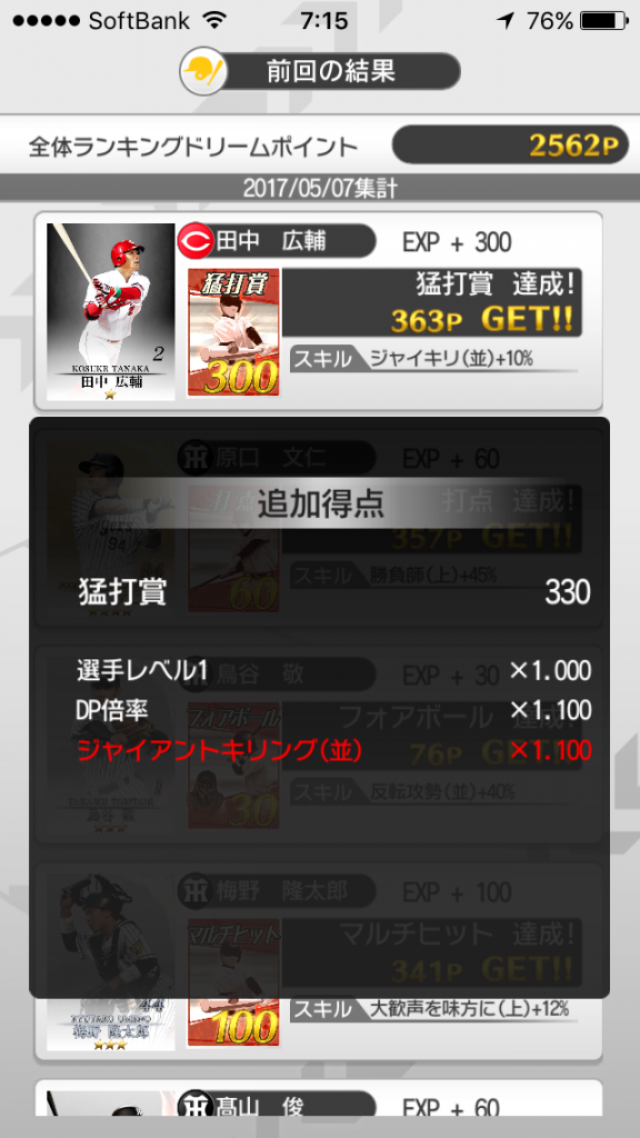 JUGEMテーマ:iPhoneゲームアプリ さて、今日もまた プロ野球が好きだ!2017 です。 昨日、まさかの二試合連続完封勝利となった 菅野さんですが。 昨日のその他の結果を 楽天・松井くんは3連続三振をとったと言うことなので 3球奪三振以外に、 3連続三振・3者凡退・セーブなどを入れてた方は 大いに稼いだことでしょう。 もっとも、菅野くんに ハイクオリティースタートや、5奪三...