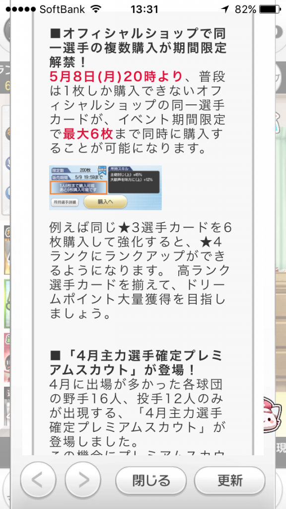 JUGEMテーマ:iPhoneゲームアプリ さて、昨日は我が阪神タイガースは 雨天中止と相成りまして そうなると結果はさんざんなモノで まぁ、今日の試合で取り返せば良いだけなのですが 全体ランクも大幅にダウン。 そろそろ、ドリームカードの運営方法を 考えねば。。。 まぁ、そんなときは なけなしのポイントで ガチャ。 うん。。。いつも通り。。。 ...