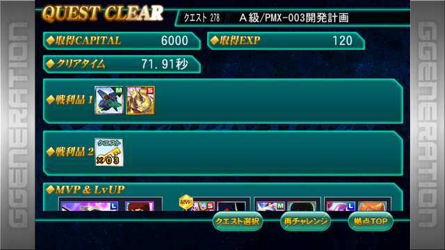 Gジェネフロンティア スペシャルクエスト「PMX-003開発計画」 前回の緊急は無事完走、サブは300やって終了でした٩(•౪• ٩) スペクエのA級を回してまずはSRジ・Oを! でもなかなかでない(;´༎ຶД༎ຶ`) 夕方から初めて、さっき(夜中0:00過ぎ)にやっと虹色ハロからコンニチハ◝(๑⁺д⁺๑)◞՞ なーんか今回はドロップ率が悪いなぁー。 疲れたので、今日はメッサーラまで作って終了です(⌍་д་⌌) ...