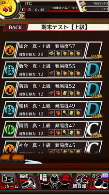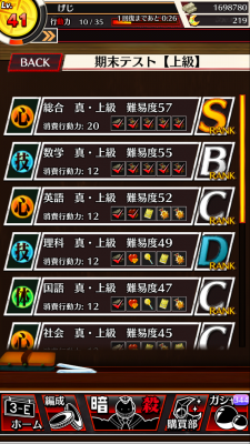 前回未クリアのステージで終了 このステージは普通だったのでSランクは余裕 Aランクで、上級数学Sランク報酬と同じ★4[リーダーシップ]片岡メグが手に入る 上から埋めていっているものの、何も落ちない。 経験値もお金も雀の涙なので、何やってるかわからないレベル まあ、ヌルヌルの後で★1のメダル落とされても、合成には使えないとはいえ、何もないよりもマシなのに たぶん、このゲームはやりつくした感じがあるので、飽きるか他に面白いゲームが出たらやめるかも JUGEMテーマ:iPhoneゲームアプリ