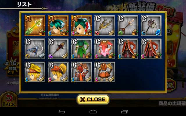JUGEMテーマ:iPhoneゲームアプリ ガチャのラインアップの履歴の画像を貼っていきます。 A武器A防具だけでなく、流れや傾向をつかんで、ガチャするタイミングをつかむのに お使い頂ければと思います。 (「Bも含め、鉄系装備が多い。」「HPアップ系が多い」など)JUGEMテーマ:iPhoneゲームアプリ