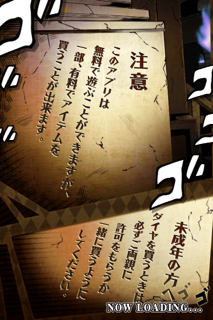 JUGEMテーマ:iPhoneゲームアプリさて、まだまだアレはメンテ中だとかで出来ませんので今日は別のアプリゲームを紹介昨日から、にゃもす乱心かと思うくらいのツィートで気がついた方も多いと思いますが・・・ゴゴゴゴゴゴゴゴゴゴゴゴゴ・・・・わかる人にはこれだけで何かわかるあの漫画・・・ジョジョの奇妙な冒険がゲームになりました 1〜3部の主役が揃い踏み!そこにしびれる!あこがr(ryちょっと長めのダウンロードが終わるといよいよチュートリアルスタートです。チュートリアルの進行役は・・・お節介な旦那(w一部...