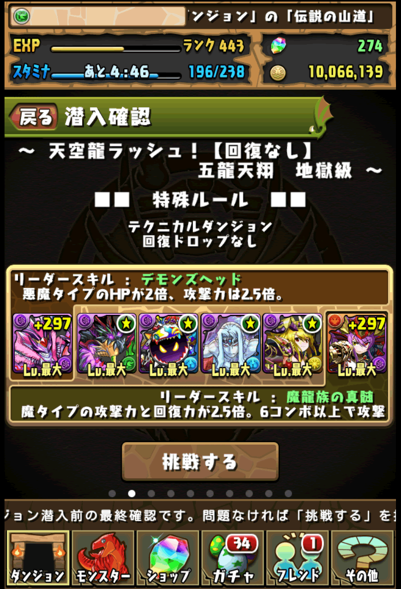 JUGEMテーマ:パズドラ 攻略パーティー 天空龍ラッシュ 五龍天翔 地獄級に、ベルゼブブ×赤ソニアパーティーで攻略です。 回復ドロップが落ちてこないので、ドラウンジョーカーを一応編成しますが、なんでも良いです。 サブにバインド回復要員がいると、バトル2でリーダーフレンドがバインドされても安定します。 ブブパーティーはHPが高いので、先制攻撃を毎バトル食らいますが、ダメージを食らう前に倒して行く感じにします。 基本的な流れは、バトル2のバインドだけ気を付けて、あと...