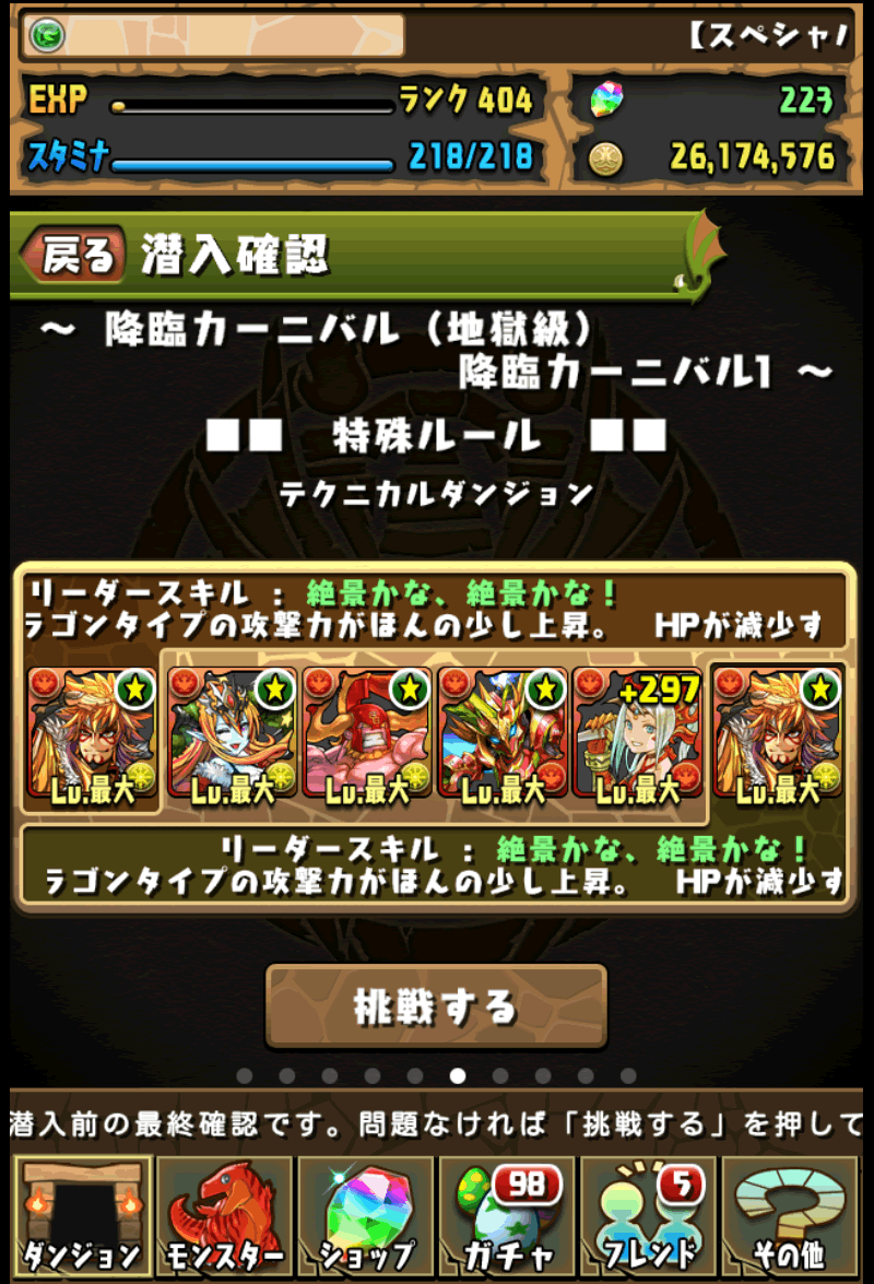 JUGEMテーマ:パズドラ こんばんわ、ねこまんまです。 今日初めてパズドラ降臨カーニバル呂布赤ソニアで初クリア!! しました。 動画もあるのでよろしくお願いします。 そして昨日はやっとランク300までいきましたー!! いやー嬉しい、なんか頑なに呂布赤ソニア使ってたけどなんだか頑張れば全部いけるんじゃないかと思っちゃうねww