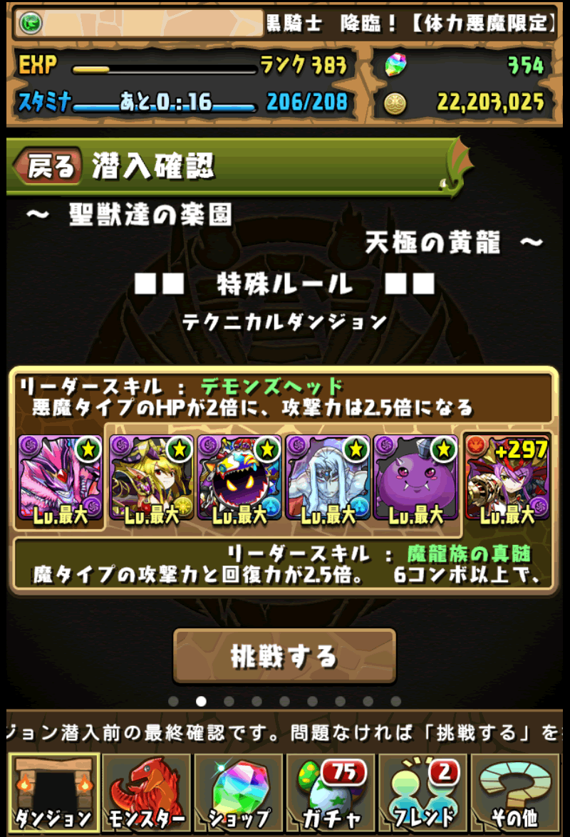 JUGEMテーマ:パズドラ 今回のパーティー テクニカルダンジョンの最深部聖獣達の楽園に、ベルゼブブ×赤ソニアパーティーで攻略です。 道中のボスは、後半の攻撃が耐えられない場合が多いので、とどめをさしやすくするのにリリスを編成します。 基本的な流れは、バトル1をドロップ変換、バトル2を殴り合い、バトル3を陣、バトル4を闇を貯めこんで毒の霧、バトル5をドロップ変換と悪魔エンハンス、バトル6で整地しながらスキル貯め、バトル7を整地からワンパン、最後は陣で倒す感じです。 L:獄羅苦...