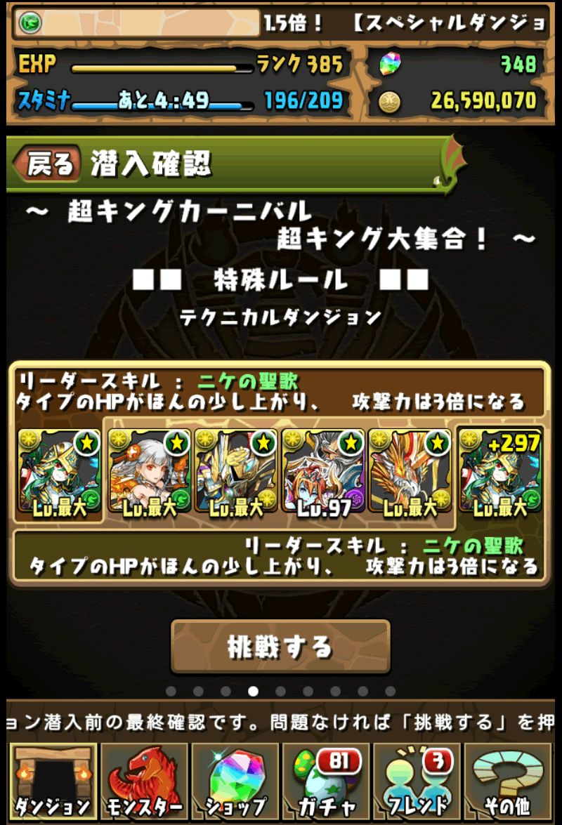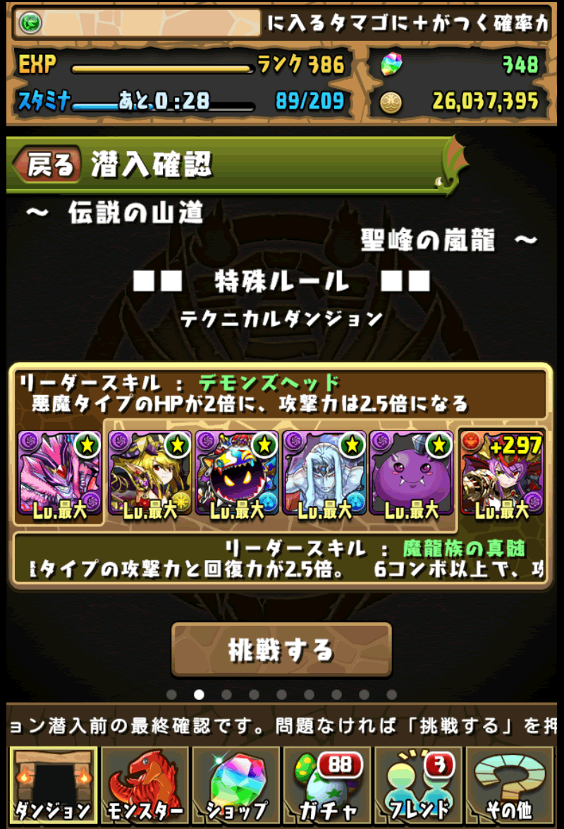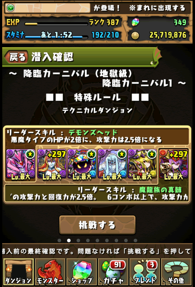 降臨チャレンジ、行ってきました!絶地獄級もきつかったですが、他にもきついダンジョンありますね。そして今回リーダーデビューを果たしたキャラもいます!