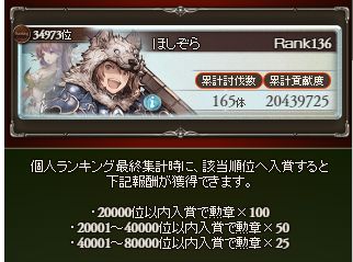 JUGEMテーマ:グランブルーファンタジー 最終戦 無事勝利し4勝1敗で終える事が出来た 最後はシード団相手となり、泥仕合を覚悟しましたが、終始先行してそのまま逃げ切り これで2回連続4勝ということでかなり良かったといえます。 個人的にはかろうじて4万位以内確保 今回リアル都合、PCトラブルなどで普段より走れなかったのですが 普段通り走れたとしても2万位は無理だったろう 今回2万位に入るには、最低でもHELL Lv90をソロで10分以内に討...