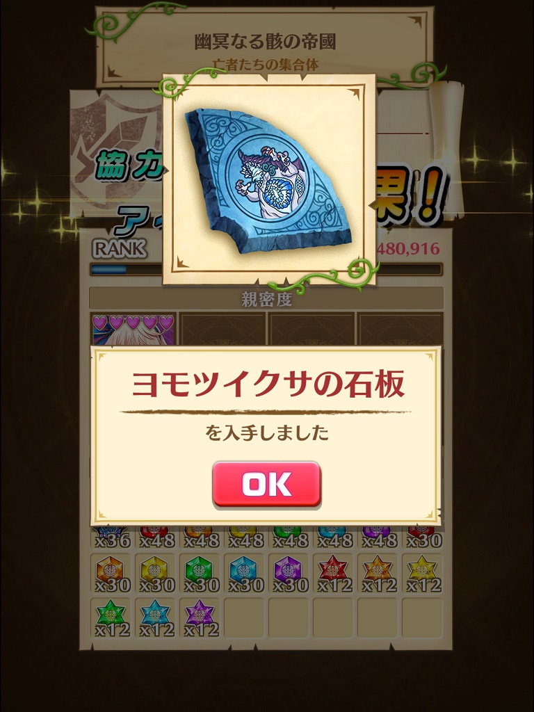 JUGEMテーマ:白猫プロジェクト モンスターストライクプロジェクト4人協力「幽冥なる骸の帝國」、ヨモツイクサの石板、ヨモツイクサのルーン、獣神玉のルーン モンストコラボ協力「幽冥なる骸の帝國」が開催されました。ヨモツイクサの石板を完成するにはヨモツイクサのルーンが2000個必要です。コラボ武器と交換できる獣神玉のルーンは稀に虹宝箱からドロップしますので、何度も周回する必要があります。星13「亡者たちの集合体」をクリアすると、ヨモツイクサの石板が貰えます。 2倍書を使用し...