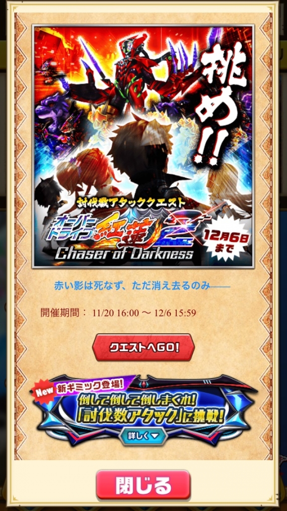 JUGEMテーマ:白猫プロジェクト 『オーバードライブ紅蓮2』「Chaser of Darkness」「絶体絶命」SSクリア動画をアップしました。 紅獣のペンダント(赤いヴァリアントへのダメージ+50%)を探偵弓フランに装備しました。水属性の双剣ミクと、キングスクラウンの魔シャルと斧オスクロルを使いました。300体目に出現する赤いヴァリアントはHPが非常に高いですね。 YouTube動画はこちら https://www.youtube.com/watch?v=uSXROpHyUZ8 皆さんは無事にサブミッションをクリアできましたか。 それでは次回の更新を楽しみにして...