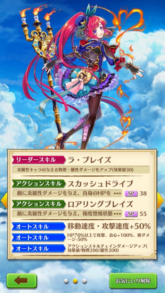 JUGEMテーマ:白猫プロジェクト ハロウィン2017ガチャ ハロウィン2017ガチャで槍マヤが当たりました。炎属性キャラです。武器ガチャも引きましたが、すぐにマヤ・モチーフ武器『キャンデランサー』が当たりました。『氷結のトリプルアクセル』星15にチャレンジしてみました。 アクションスキル1が移動操作可能で使いやすいですね。HP自動回復も付いていて、炎属性ダメージが高く火力も結構あります。武器スキルの付与効果にSP自動回復が付いていてスキルが連発できます。ただし、この難易度だとジャストガードを次々と決め...