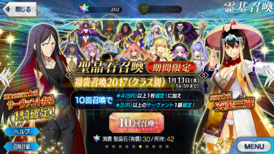 JUGEMテーマ:ケータイゲーム 新年あけましておめでとうございます! そして、そして 福袋ガチャが引けるようになりましたね。 課金しなければならないのが痛いところではありますが 私は、ついにFGOに課金をしました! なので、早速引いてみましたよ! ジャンヌとジャックのガチャにしようかなと思ったのですが エルロメイさんが欲しかったので、キャスターのクラスを選択しました。 さぁ!エルロメイ2世をいざ召喚せよ!! 来てく...