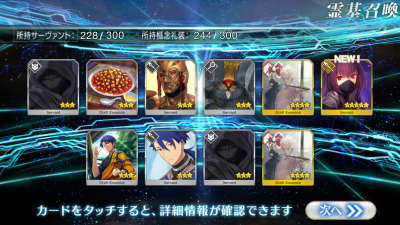 JUGEMテーマ:ケータイゲーム ついにこの日が来ました。 今日は、ピックアップ召喚で「スカサハ師匠」が出るようになっているのです! 二日前には、イリヤスフィールがピックアップされていたので10連を1回回しましたが 結果はイリヤを召喚することができませんでした。 スカサハ師匠は自分の中でビジュアル、スタイル、ステータスで上位に食い込んでいる キャラクターなので、欲しいなと思っているサーヴァントのうちの一人です。 というわけで、さっそく10連!!...
