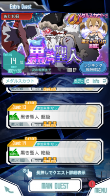 JUGEMテーマ:ケータイゲーム さてさて、最近流行りだしているメモデフですが ランキングイベント第三弾が開催されましたね! イベントが開催される速度早すぎてプレイ時間が追い付かなーい!w そんな情けないことはさておいて 早速、新しいランキングイベントプレイしてきました! 今回のランキングイベントのクエスト名は 【黒き聖人】 これだけ見ると、なんのことだかさっぱりですが 開催期間は12月14日から10日間ということなので そこから推測すれば黒いサンタ...