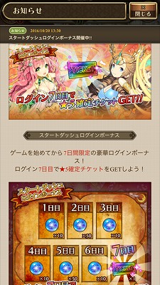 JUGEMテーマ:ケータイゲーム 7日間ログインすると★5確定チケットが貰えます♪ また、1日目〜6日目まではガチャを回すために必要なアイテム 「蒼水晶」がもらえるので絶対にGETしましょう! 潜空のレコンキスタの最高レアリティは★6なんですが 持ってる人はほとんどいません。 実際は★4がデッキの多くを占めて★5が主力になりますが ガチャだとあまり★5は出てきてくれません。 その...