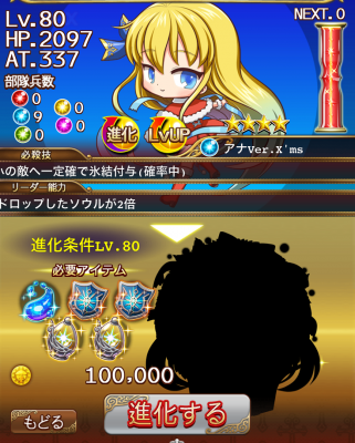 どうも、トールです(^^)/ ごきげんよう! ついにというか、ようやくというか ナイツオブショットで★5のキャラを ゲットする事ができましたので 報告したいと思います。 ★5にすることができたキャラですが、 前回の記事で触れました「アナXmas'ver」です。 アナXmas'verを進化させるには、 LvをMAXの80にもっていくだけでなく 進化アイテムとして、 「ブルーエンブレム」が2個 「青雫」が1個 「輝きの玉」が2個 金貨が100000必要となってきます。 進化をするだけでなんて大がかり なんだ!!! ...