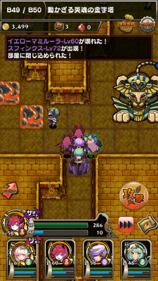 どうも、こんばんは! トールです(^^) 迷宮の地図に存在する妖精さんのリストを 充実させるべく、 昨日はトール自身が保有している金字塔の ☆7の地図のB41階から最深部へ向けて 挑戦をしておりました! 迷宮の地図の妖精さんリスト(随時更新)はコチラ 一体、50階に住んでいる妖精さんは どんなヤツなんだろうか?と 思いながらどんどん潜っていき、 ついに49階まで結構余裕残しで さしかかったところ、ヤツが現れやがった のです!! このタイトルにもあるように 「スフィンクス Lv72」が、 大量のザコ...