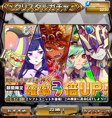 どうも、トールです(^^) ダークローグラビリンスですが、 こないだの金曜日に新キャラクターの 追加がありましたね! どうやらエジプトの神々の追加 ということで、 こないだようやくハロウィンイベントが 終わったと思いきや、なかなか 目まぐるしい変化がありますな! キャラメラやリリィを育成する暇もなく また忙しくなりそうだ・・・。 さて! 新シリーズ「目覚めしエジプトの神々」 ということで、ガチャで新キャラの ゲット率が高まっているという事もあり トールも早速クリスタルガチャに チャレン...