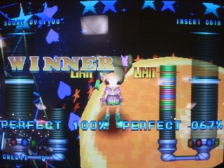 12/18 ブログ続き 実はLipsRマリカのリザルト画面で… こんなことになってました。セリカはエンターティナーの鑑。 100%と半ケt(ry のコントラスト…最高ですね(←でも人として最低) さて、2P側ですけども。 ナビRセリカは3ミスでしたが、JETマリカは見事な2P側復活! やっぱり2P側だとバンザイポーズでもOKなので助かります。 そしてLipsRミルカまで3ミスでした。 時間がないので3タテはミルカ先生の力を借りました。 (なおナビRセリカ、LipsRミルカはまたもや3ミスずつ) ...