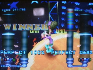 12/7 ブログ続き ここからは3タテ達成時にのみ許される、エキシビションマッチ。 要するに延長戦です。 ですが、ちょうど先程(前エントリー)の3ヨコ達成の時くらいに、 ヨコのテトリス(アリカ版のグランドマスター)を始めたオバハンが。 タバコ吸いながら始めたんですよね。煙とか臭いとかダイレクトに直撃。 さすがにこれはたまらんので一時離席し、終わるのを待つ。 4クレ目(エキシビションマッチ 1回目) ようやくプリカでも出ました。となればあとは・・・ ミルカ先生しかいない! ショータ...