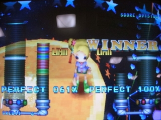 11/6 ブログその2 昨日と違って、決していい意味での続きにはなっていません。 2クレ目、まずはナビRセリカで言いがかりミスから崩される。 これだけならJETマリカで挽回すればまだ許せるのですが、 終盤で「は?!」と声が出るくらい、納得いかない判定で1ミス。 オマエ、それを青Goodと言い張るのか!みたいな。 秩父鉄道のLED案内風に「次は オマエダ」(※復讐の相手が) で、LipsRミルカを選んだわけですが、100%ペース。 このまま終わればまだなんとか許すレベルだったのですが、 これまた「何ィ?!」と声が...