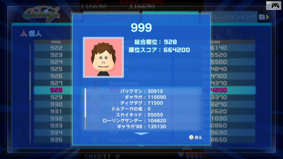 ナムコミュージアム、現在のランキングとかスコアとか。 漸く一区切り。1000位以内の記念にと。 ドルアーガの塔、ローリングサンダー2は未プレイ。 やればスコアも増え、もう少し順位も上げられそう。 どのゲームも思っていた以上に面白いんでね、第二弾が出ないかなと期待してみる。 ドラゴンバスター、パックランド、ワルキューレの伝説とかやってみたいんだよな。 #ゲーム