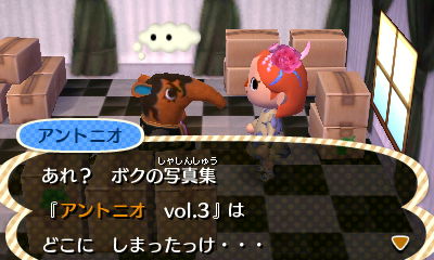 JUGEMテーマ:とびだせ どうぶつの森【3DS】 今回も長めです。 楽器を持つと、こんなことを言うようですね。 でもなんだろう、ほのぼのな歌(某パスタな歌を想像する)なんだろうけれど、ラッキーからはものすごいこわい歌(某眉毛な歌)っぽく聞こえる。 ラッキー引っ越しフラグ。 マイデザを着たジュリー。 ……紐がガタガタなのが、ばればれである。 後ろ。どうにかしたい、この肩ひも。 おつかいで、ラッキー、服を着る。 ……これはひどい。 いやー...