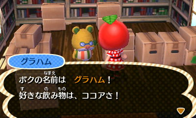 JUGEMテーマ:とびだせ どうぶつの森【3DS】 なかなかトキめく子に出会えなかった サブ村でしたが、 とうとうキました!! きゃー!!! グラハムさんよ!グラハムさんだわ!! なんて可愛らしい・・・・! 短い手足、 笑うとぐにゃりと曲がる 目なんだかメガネなんだか分からんやつ、 怪しいオタク臭プンプンの「ですぞ」 ですぞぉぉぉぉぉぉっぉぉっぉぉぉぉぉ! やばいわ。かわいすぎ。