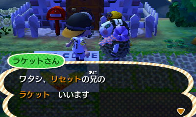 JUGEMテーマ:とびだせ どうぶつの森【3DS】 「あの・・・言わなきゃいけないことあるの」 「なんだ? 「タイトルでは、あんなこと言っちゃったけど…」 「なんだよ、言ってみろよ」 「あ、あのね…(=6ω6=)デキちゃったみたいなの」 そーなんです! デキちゃいました!! 住民の引越しフラグ立て。 粘ったよ〜・・・。 とはいえ、10往復くらいで 目当ての住民にフラグ立てられたから まだイイ方だよね? 白羽の矢がたったのは、 ラケットさん! ・・・違うし。 フルフリフリルたん(*´`)