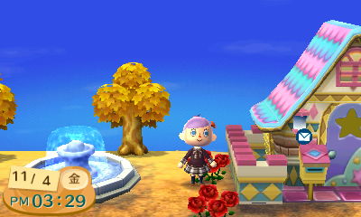 JUGEMテーマ:とびだせ どうぶつの森【3DS】 * スタッフロールが、2016になりましたね! * 2,3日明けたら、ほぼ「ゆうたろう」がキーワード検索でうめつくされてまして、アクセス数に驚いています笑 と、とりあえず、ふるさとチケットのお題(服を壁かける、チケットを受け取る)後、またふるさとチケット稼ぎがてら、村をうろちょろすれば、出会えるはず? * はぴ森の服(OL、フリル付きエ...