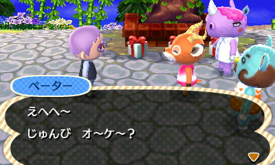 JUGEMテーマ:とびだせ どうぶつの森【3DS】 きょうのかくれんぼ。 本人の目の前にして、話題にしているあけすけなトラこ。 お化粧談義とかしてそう。 きょうのかくれんぼ。 ペーター主催パート2。 橋の公共事業提案が終わったので、3つめ建ててみてのお披露目会で、幸せシカメンズ光景。 十分堪能。かわいい。 全員に話しかけたら、チャックからきょうのかくれんぼ。 ペーター、3連続だ笑 ブルースがペーターの家。 チャックがブルースの家。 ペーター...