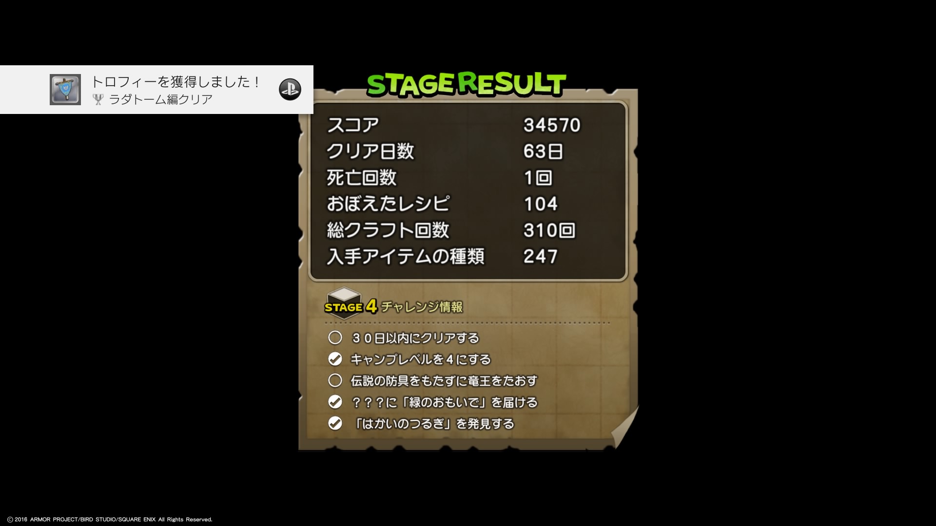 JUGEMテーマ:ドラゴンクエスト 最終章にはいり、ラダトームを再建することになりましたが、、、 世界が灰色に染まってて全然素材が手に入らないっす・・・ それでも進めていると、毒沼地帯や砂漠地帯、溶岩地帯や氷などが出てきて、これまでの世界の総集編みたいな感じになってきました。 拠点のバトルが度々発生するのですが、敵を放置するとすぐに拠点を壊されてしまうので、敵が沸いたらすぐにたたいてヘイトが自分に向くようにしないといけないですね。 それほど苦労...