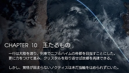 今日はチャプター10を終わらせました。 トピックス 現在:チャプター10 1:ストーリー『途中下車の旅』 2:ストーリー『王たるもの、軍師たるもの』 3:旅のアルバム 1:ストーリー『途中下車の旅』 最古の王家の墓があるというケスティーノ鉱山に行くため、王子一行は列車に乗ってカルタナティカ駅へ。 列車内では、失明したイグニスに声を...