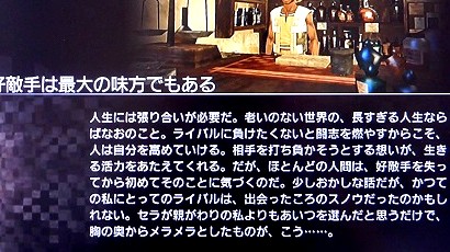 ゲームのロード中は、いつもこの画像のようなシーンになります。 実はこれを今まで読んだことがなくて・・・(ごほっ) 上の部分の絵からして、クエについての話が書かれているんだとずっと思ってました。 そして今日気付いたのですが、実はライトニングの思いなどが書かれてたんですね!(いまさらw しかし書かれている内容が・・・「セラが親がわりの私よりもあいつ(スノウ)を選んだと思うだけで、胸の奥からメラメラしたものが、こう・・・。」 ∑(...